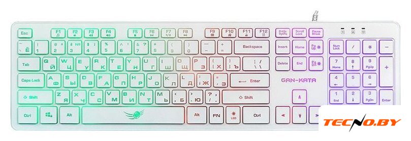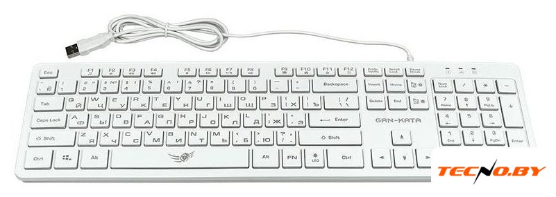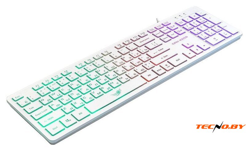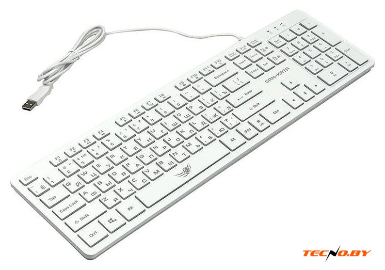 игровая для ПК, мембранная, пластик, интерфейс подключения - USB, подсветка, цвет белый