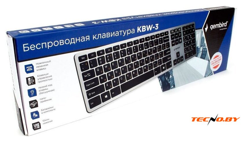 стандартная для ПК, мембранная, пластик, интерфейс подключения - радио/Bluetooth, влагозащита, цвет серый