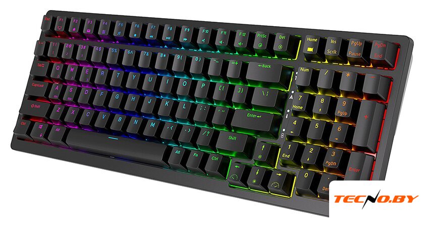игровая для ПК, механическая, Redragon Ice, пластик, интерфейс подключения - USB-A/радио/Bluetooth, цвет черный/прозрачный