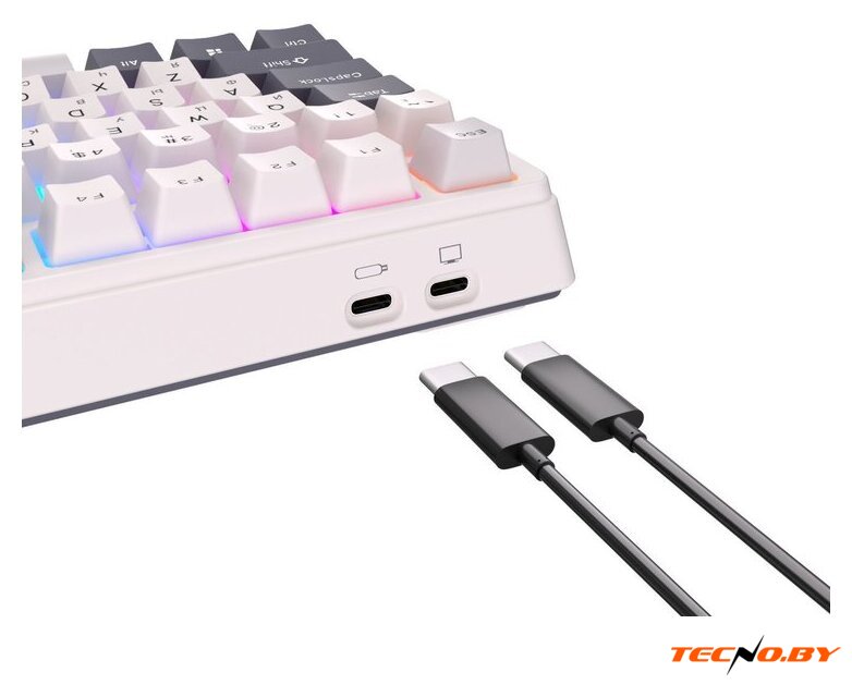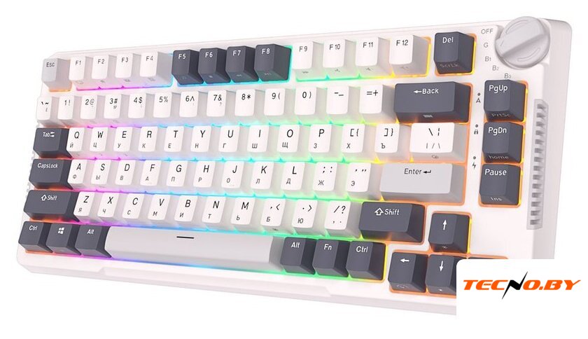 игровая для ПК/для компьютеров Apple/для iPad/для устройств Android, механическая, RK Blue, ход с кликом, пластик, интерфейс подключения - USB-A/радио/Bluetooth, подсветка, кириллица: да, USB-хаб, цвет белый/синий