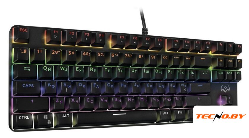 игровая для ПК, механическая, Outemu Blue, ход с кликом, пластик, интерфейс подключения - USB-A, кириллица: да, влагозащита, цвет черный