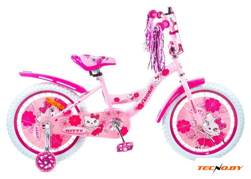 двухколесный велосипед с приставными колесами для девочек, возраст: 5-7 лет, рост: 115-130 см, сиденье: обычное (седло), колеса 18'', рама: сталь, вилка жесткая