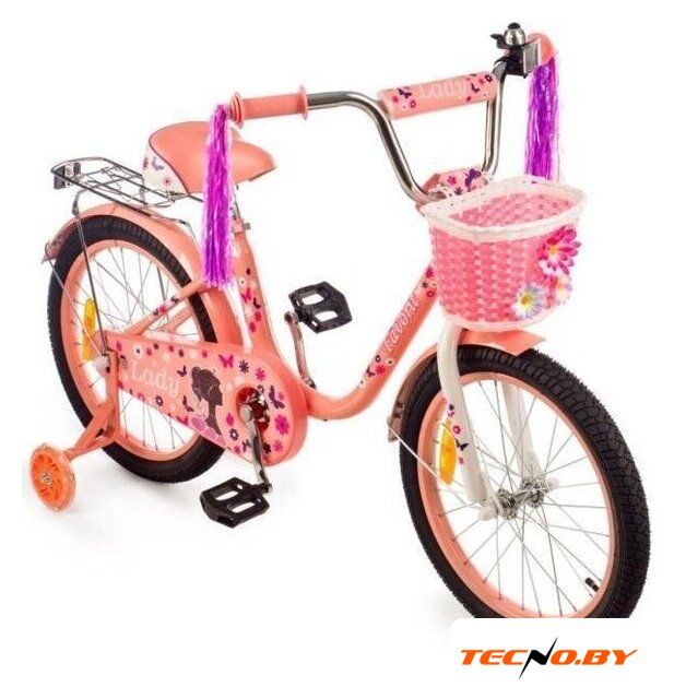 двухколесный велосипед с приставными колесами для девочек, возраст: 5-7 лет, рост: 105-115 см, сиденье: обычное (седло), колеса 18'', рама: сталь, вилка жесткая