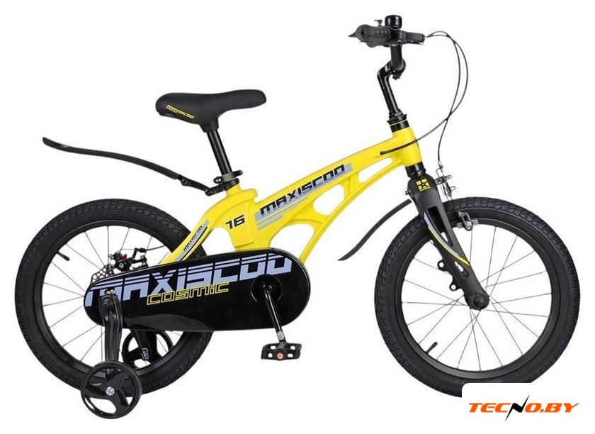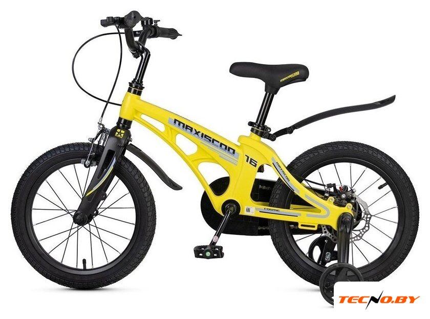 двухколесный велосипед с приставными колесами для мальчиков, возраст: 4-6 лет, рост: 100-115 см, сиденье: обычное (седло), колеса 16'', рама: магниевый сплав, вилка жесткая
