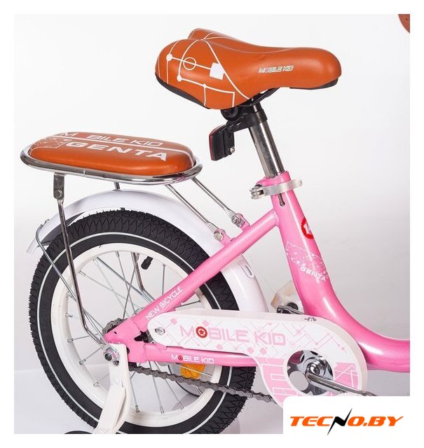 двухколесный велосипед с приставными колесами для девочек, возраст: 5-7 лет, рост: 105-115 см, сиденье: обычное (седло), колеса 18'', рама: магниевый сплав, вилка жесткая