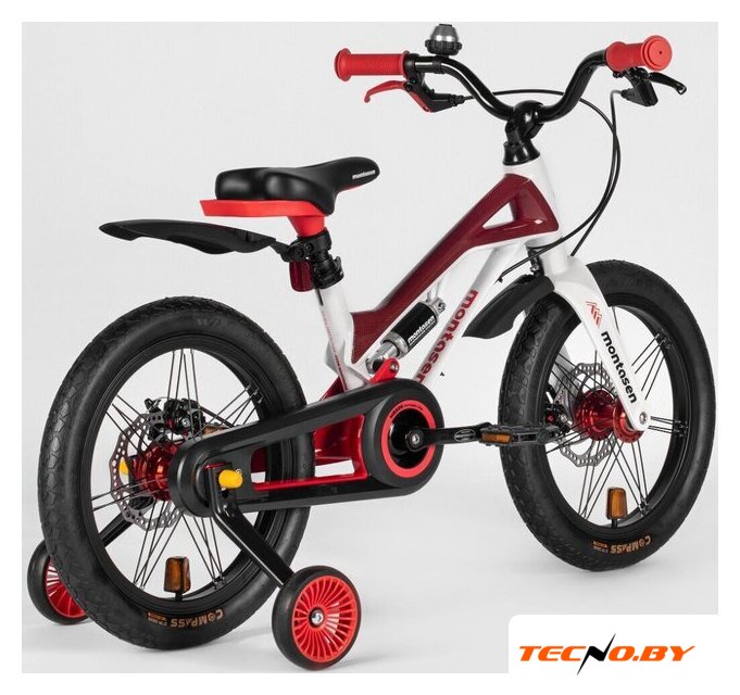двухколесный велосипед с приставными колесами для мальчиков, возраст: 4-6 лет, рост: 100-115 см, сиденье: обычное (седло), колеса 16'', рама: магниевый сплав, вилка жесткая