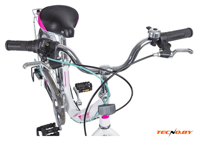 двухколесный велосипед с приставными колесами для девочек, возраст: 5-7 лет, рост: 105-115 см, сиденье: обычное (седло), колеса 18'', рама: магниевый сплав, вилка жесткая
