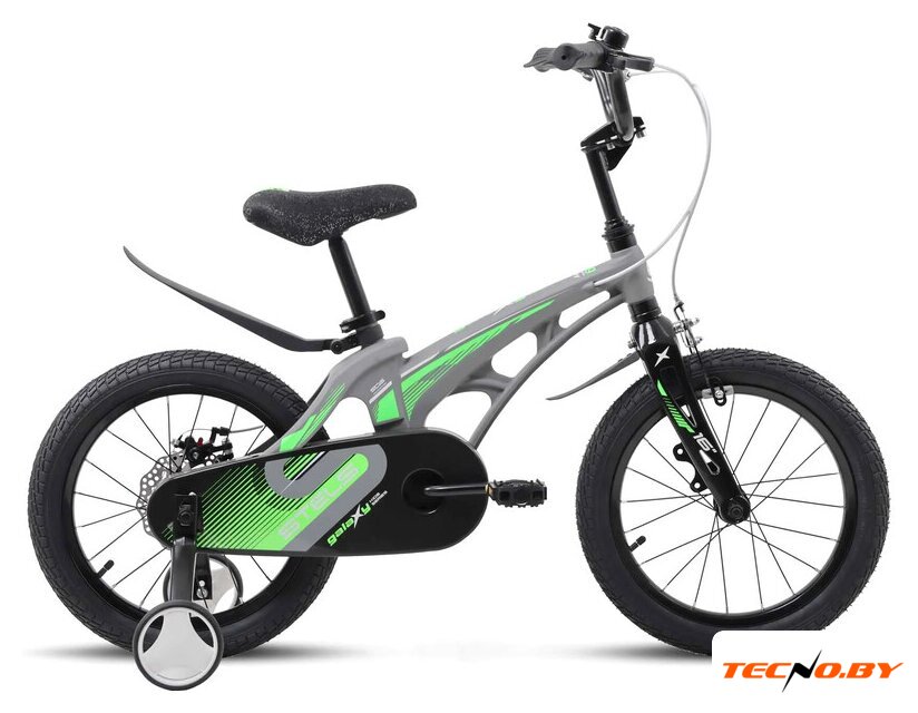 двухколесный велосипед с приставными колесами для мальчиков, возраст: 4-6 лет, рост: 100-115 см, сиденье: обычное (седло), колеса 16'', рама: магниевый сплав, вилка жесткая