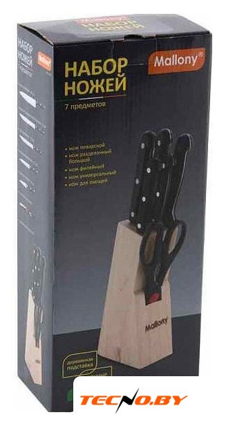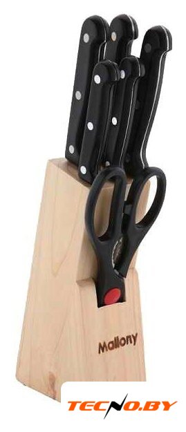 | Комплектация | - нож поварской- нож филейный- нож универсальный- нож для овощей- нож разделочный- кухонные ножницы- деревянная подставка |
