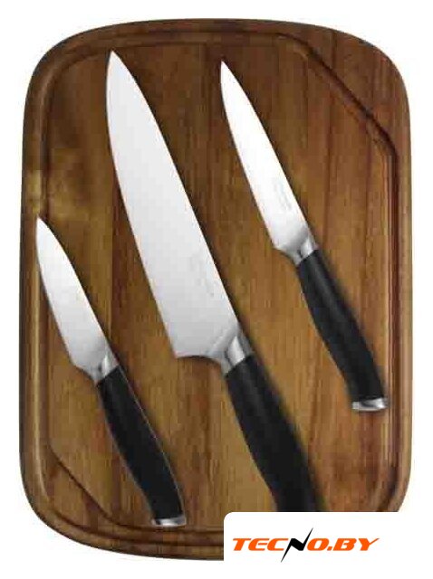 | Комплектация | Нож для чистки овощей, Нож поварской, Нож универсальный, Разделочная доска |