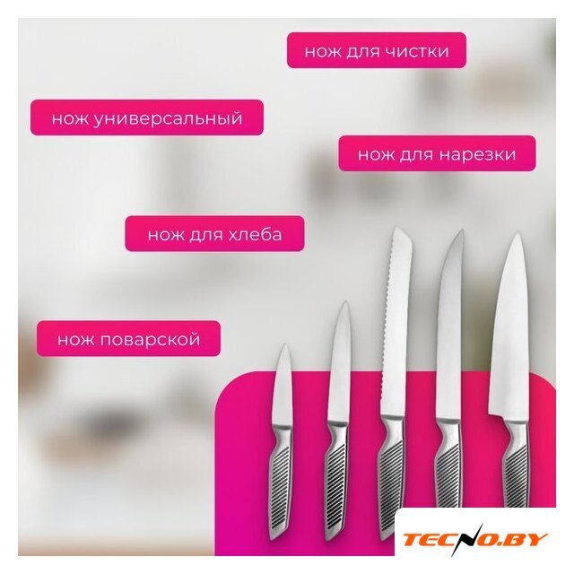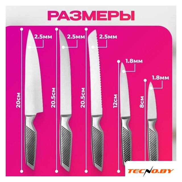 набор ножей (5 шт), универсальный/поварской/для очистки овощей/для хлеба/разделочный, материал: нержавеющая сталь/ABS-пластик, лезвие 9-20 см, в комплекте подставка