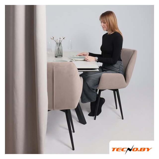 кухонный стол, круглая, 1200x1200 мм, высота 760 мм, материал: МДФ (столешница), хромированная сталь/МДФ (опоры), белый