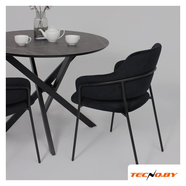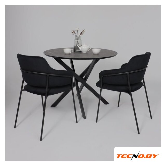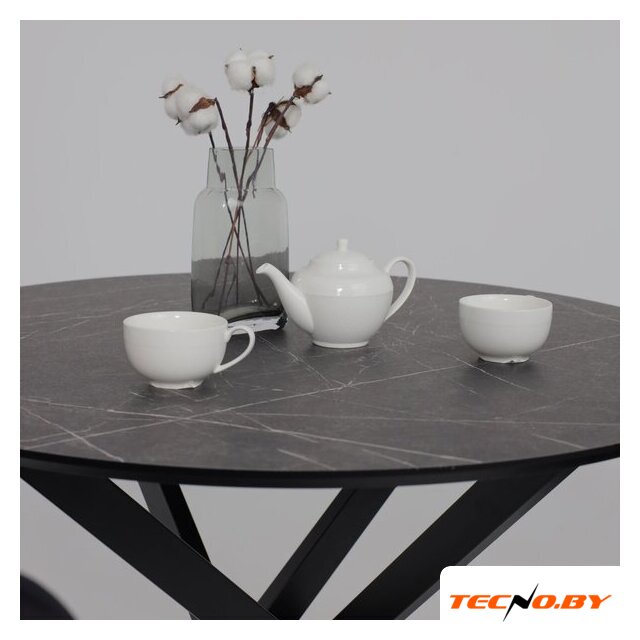 круглая, 950x950 мм, высота 750 мм, материал: пластик/мрамор (столешница), металл (опоры), белый