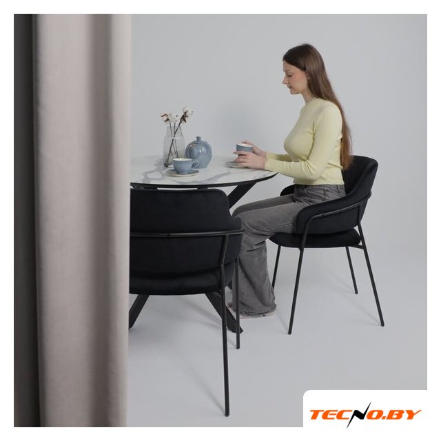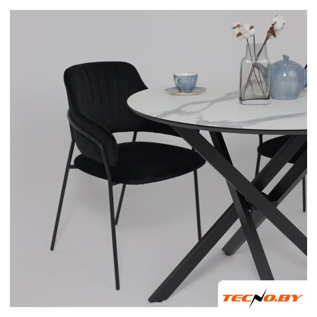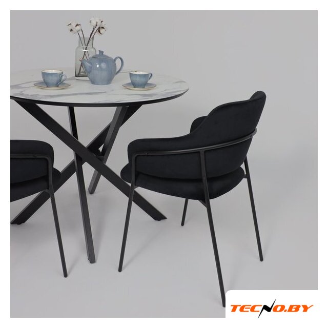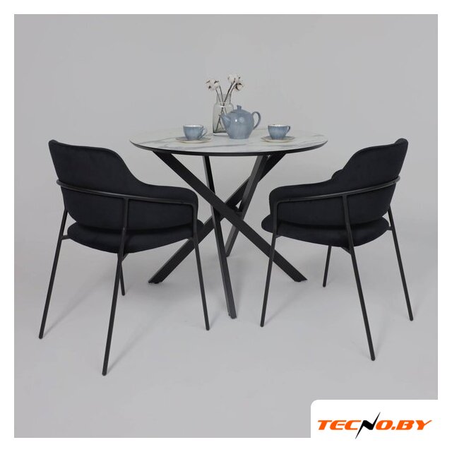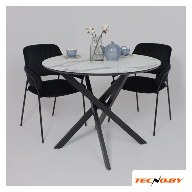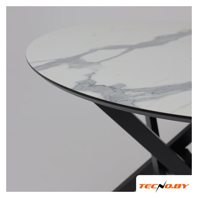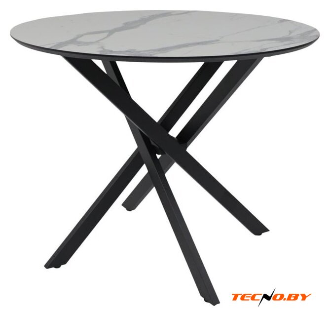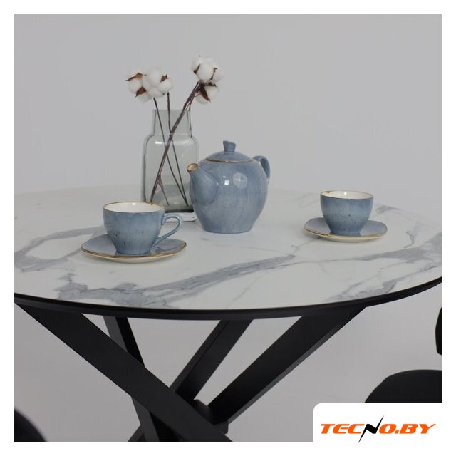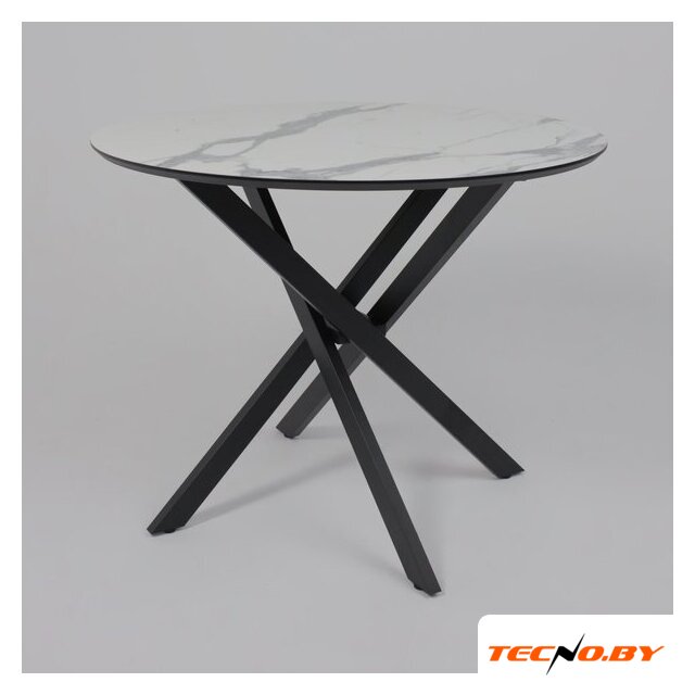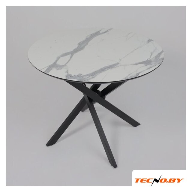круглая, 950x950 мм, высота 750 мм, материал: пластик/мрамор (столешница), металл (опоры), белый