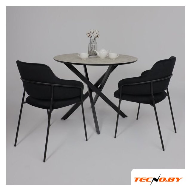 круглая, 950x950 мм, высота 750 мм, материал: пластик (столешница), металл (опоры), черный