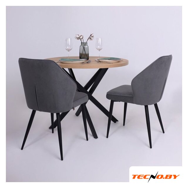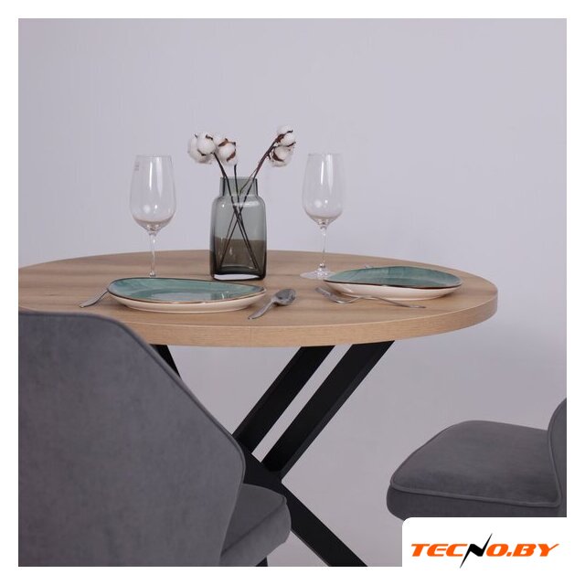 круглая, 950x950 мм, высота 750 мм, материал: пластик/ЛДСП (столешница), металл (опоры), темно-коричневый