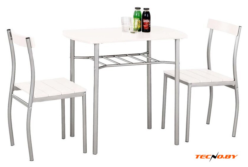 Эта обеденная группа создана с учетом повседневных нужд. Комплект включает два стула, что идеально подходит для небольших помещений или уютных встреч tête-à-tête. Несмотря на отсутствие функции раскладывания, стол обладает необходимой вместимостью для комфортного размещения обеденной посуды и принадлежностей.