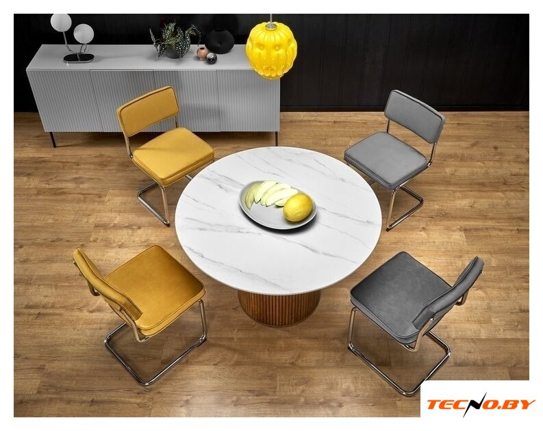 Ощутите роскошь и удобство в использовании с кухонным столом Halmar Bruno в белом мраморном и ореховом оттенках — идеальное дополнение для вашего дома.
