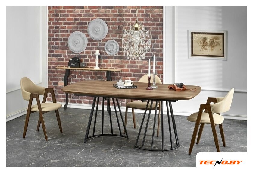 Кухонный стол Halmar Everton завоевывает внимание своим утонченным дизайном. Благодаря гармоничному сочетанию 🍂 ореховой столешницы и черных опор, он привносит в интерьер нотки современности и изящества. Прямоугольная форма и четкие линии делают его элегантным и универсальным дополнением к любой кухонной обстановке. Черная окрашенная сталь опор удачно подчеркивает общую цветовую гамму, добавляя выразительности.