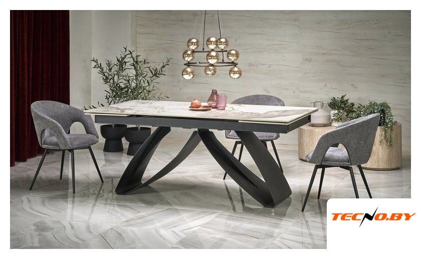 кухонный стол, прямоугольная, раздвижной, 1600x900 мм, высота 760 мм, материал: керамика (столешница), окрашенная сталь (опоры), белый