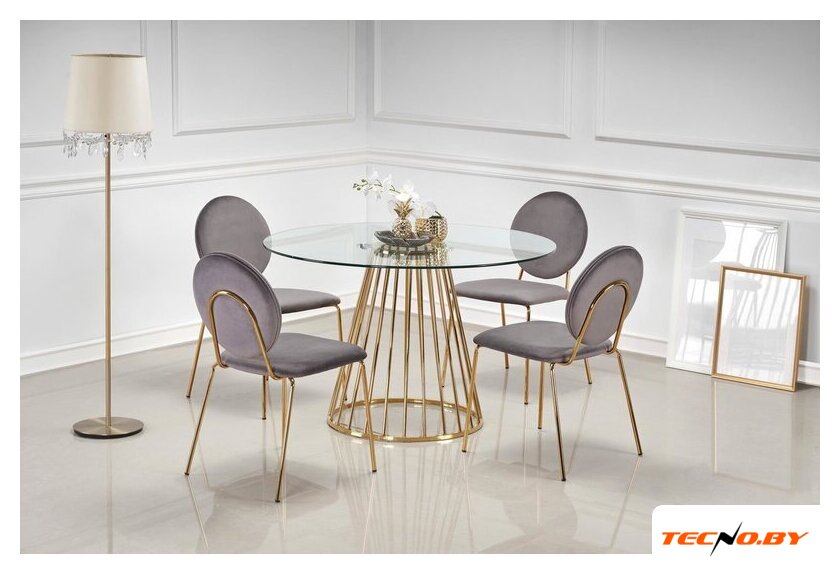 Кухонный стол Halmar Liverpool станет настоящей жемчужиной вашей кухни благодаря своему изысканному сочетанию прозрачного стекла и золотистых стальных опор. Именно такая комбинация привнесет в ваш интерьер современный и стильный акцент, который выделяется на фоне повседневной обстановки. 🎨 Уникальный дизайн круглой формы добавит гармоничность и целостность в пространство вашего дома.