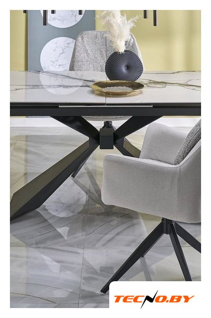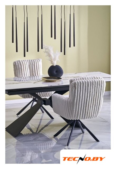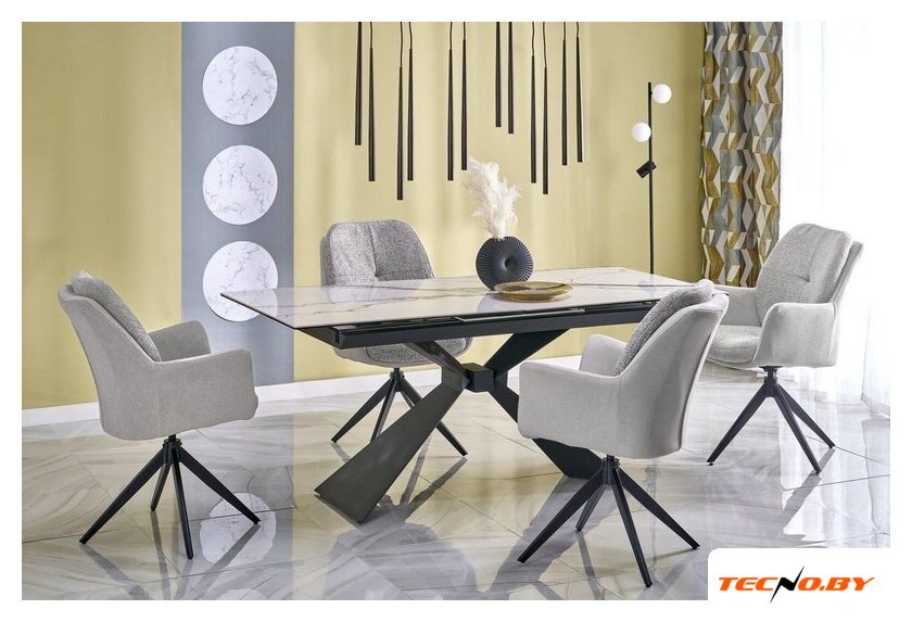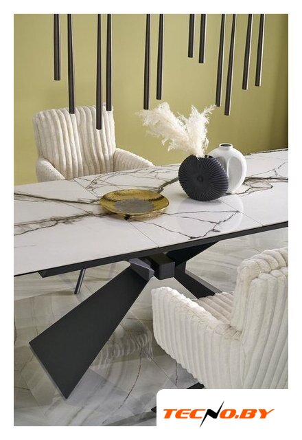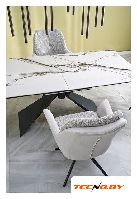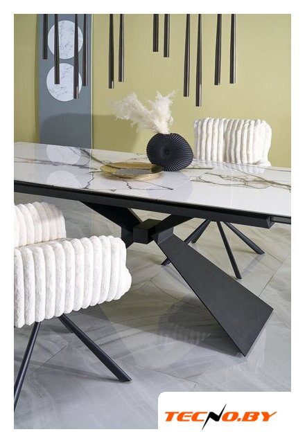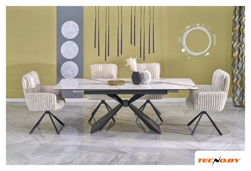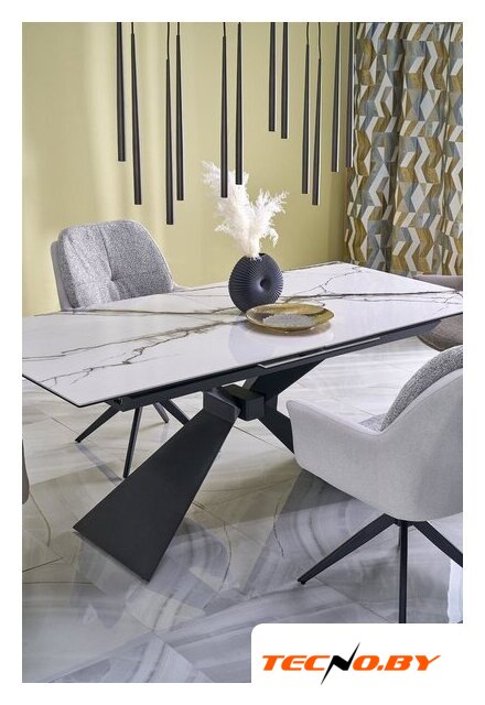 кухонный стол, прямоугольная, раздвижной, 1600x900 мм, высота 760 мм, материал: керамика (столешница), окрашенная сталь (опоры), белый