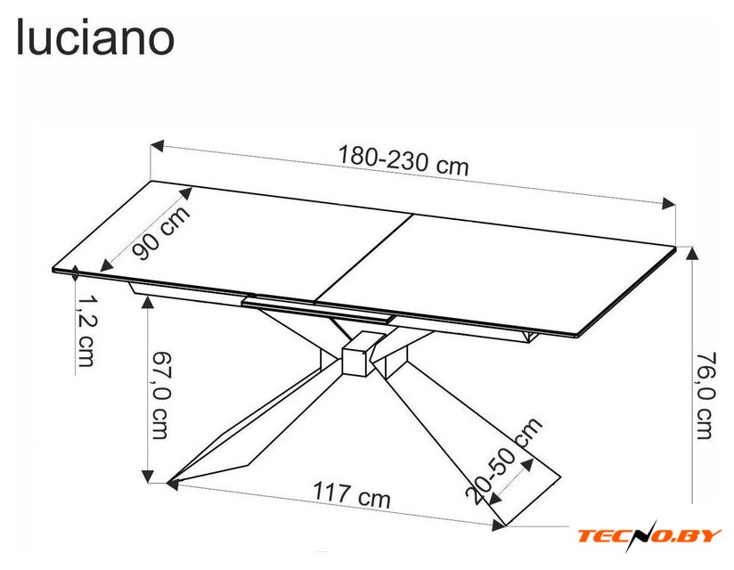 прямоугольная, раздвижной, 1800x950 мм, высота 760 мм, материал: стекло/керамика (столешница), МДФ (опоры), белый