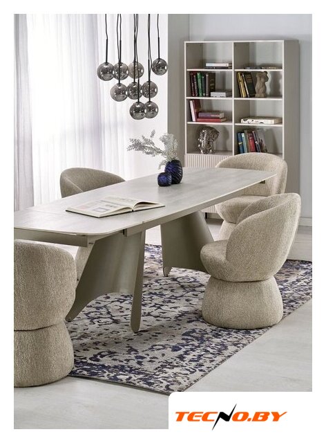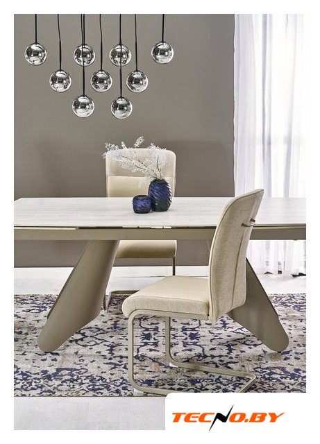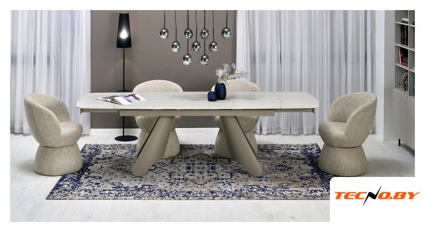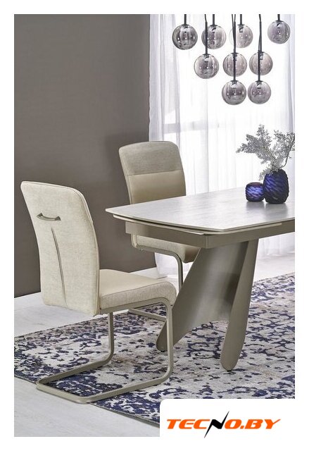 кухонный стол, овальная, раздвижной, 1600x900 мм, высота 760 мм, материал: керамика (столешница), окрашенная сталь (опоры), коричневый