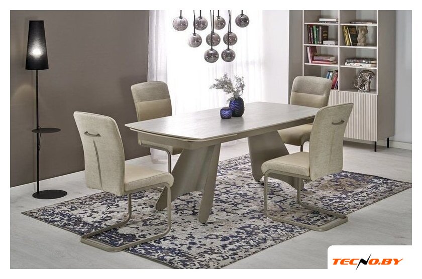 кухонный стол, прямоугольная, раздвижной, 1600x900 мм, высота 760 мм, материал: керамика (столешница), окрашенная сталь (опоры), белый