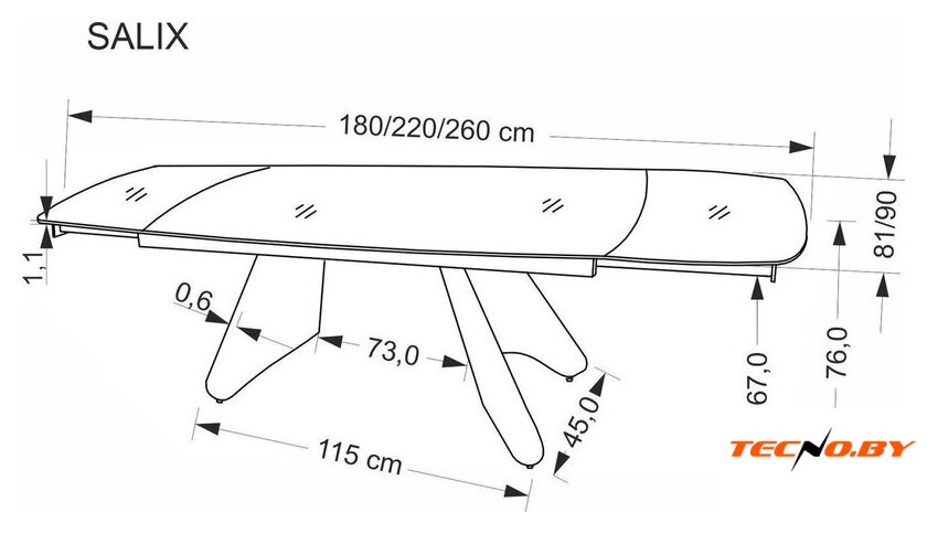 прямоугольная, раздвижной, 1600x900 мм, высота 750 мм, материал: керамика (столешница), металл (опоры), черный