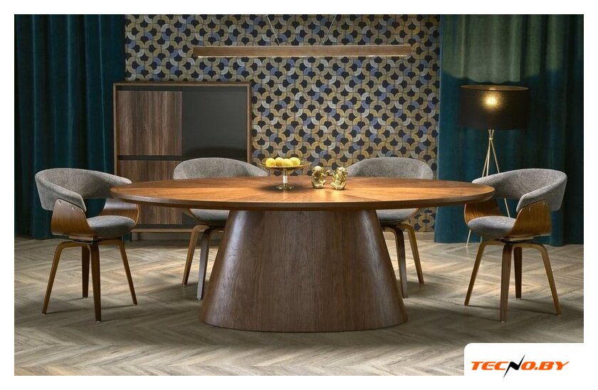 кухонный стол, прямоугольная, раздвижной, 1800x1000 мм, высота 760 мм, материал: шпон (столешница), окрашенная сталь (опоры), коричневый