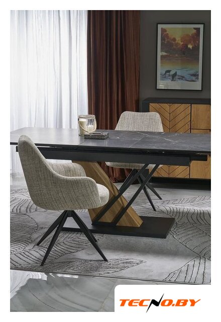 кухонный стол, прямоугольная, раздвижной, 1800x1000 мм, высота 760 мм, материал: шпон (столешница), окрашенная сталь (опоры), коричневый