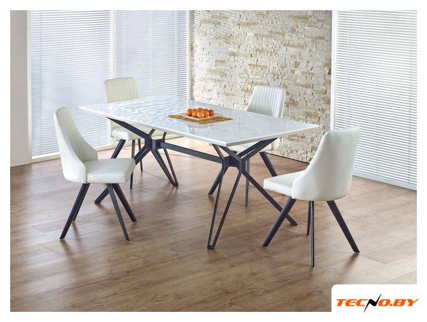 обеденный стол, классический, прямоугольная форма, 1600×900 мм, материал: МДФ (столешница), окрашенная сталь (опоры)