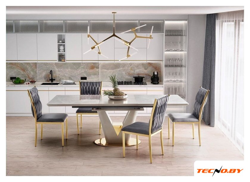 Погрузитесь в атмосферу утонченного стиля с кухонным столом Halmar Valentino 160, выполненным в светло-сером оттенке с золотыми акцентами. Его прямоугольная форма и стильный дизайн делают его идеальным дополнением для любой современной кухни или столовой. Сочетание светло-серого мраморного оттенка с тщательно продуманной цветовой гаммой создает изысканный образ, который не оставит равнодушным ни одного гостя. ✨