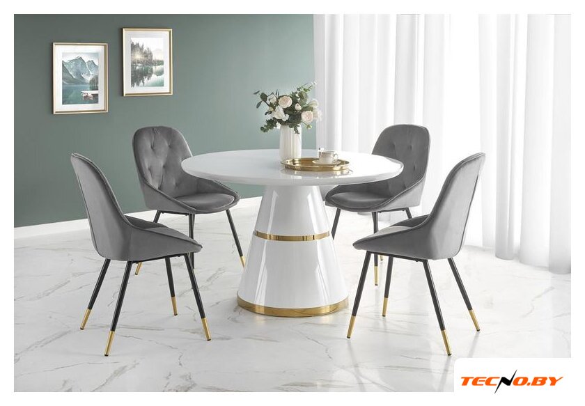Halmar Vegas 120 (белый/золотой) — это не просто предмет мебели, а акцент вашего интерьера. Хотя в комплект не входят стулья, этот стол легко сочетается с различными моделями кресел и табуретов, позволяя вам создать индивидуальную атмосферу гостеприимства и уюта.