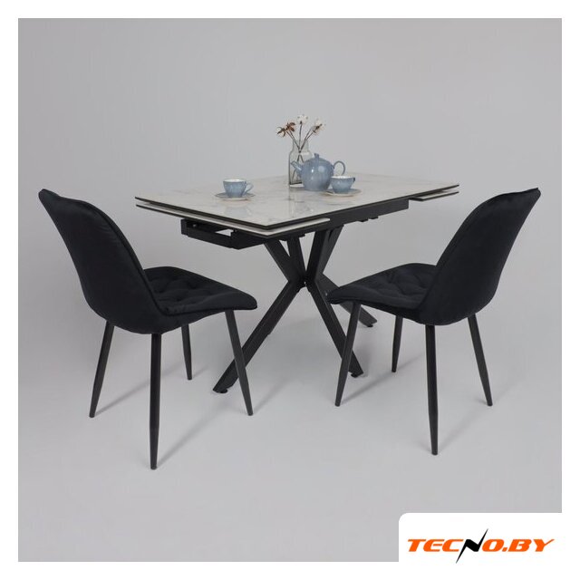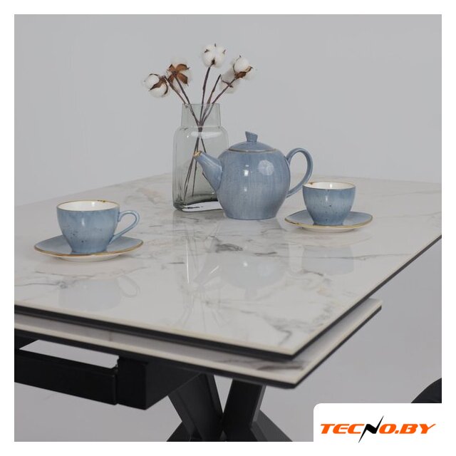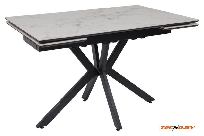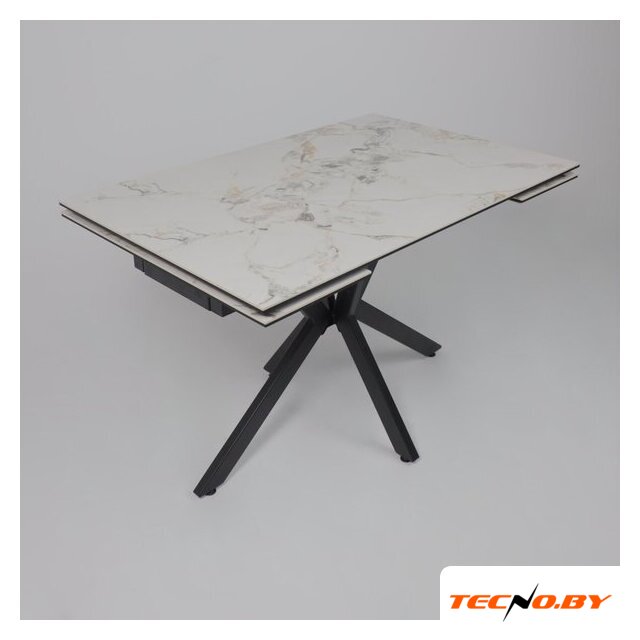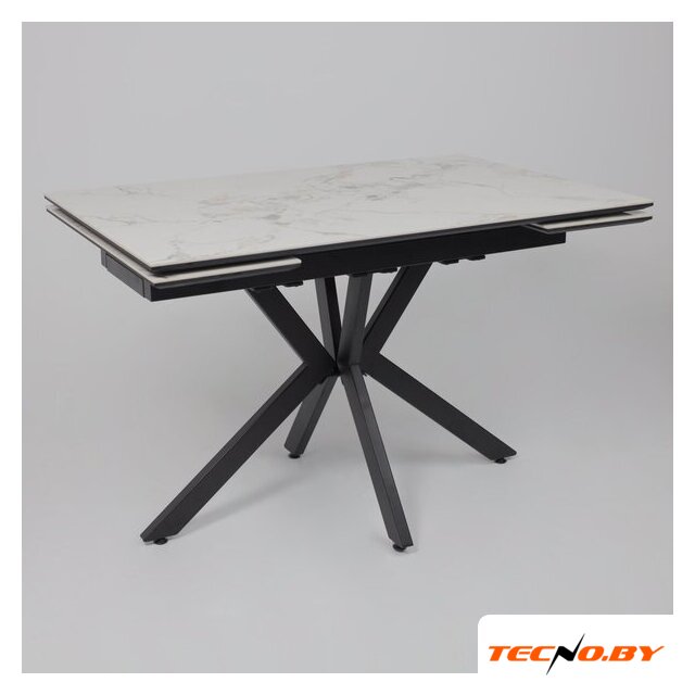 кухонный стол, прямоугольная, раздвижной, 1200x800 мм, высота 760 мм, материал: МДФ/керамика (столешница), дерево (опоры), белый