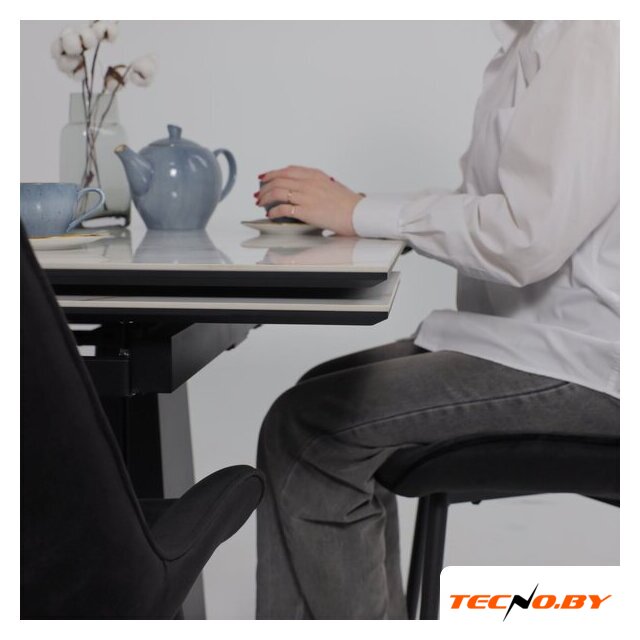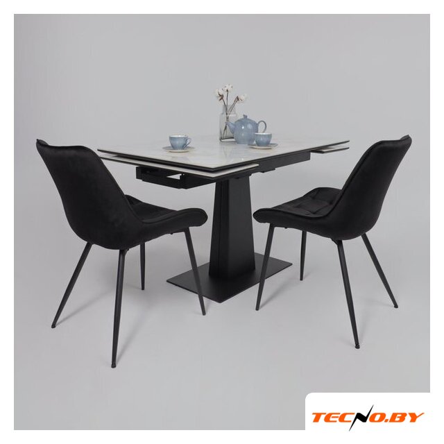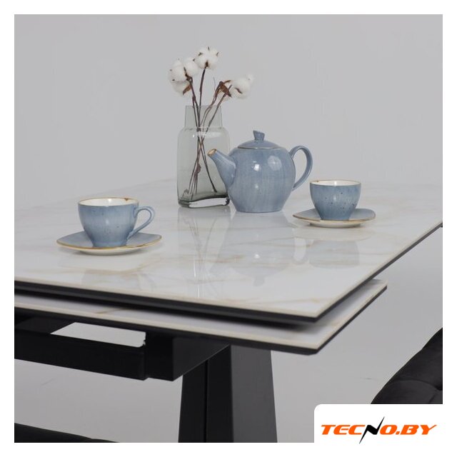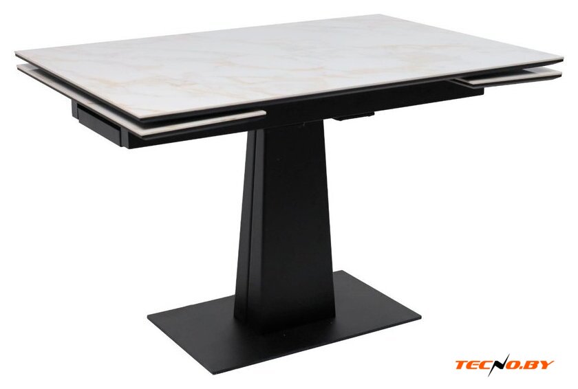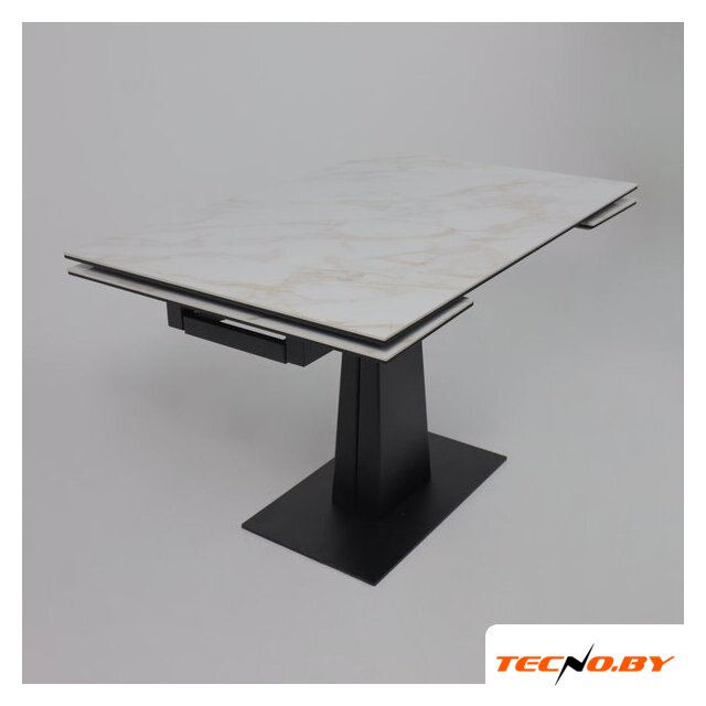 круглая, раздвижной, 1200x1200 мм, высота 750 мм, в разложенном виде 1600x1200x750 мм, материал: керамика/ЛДСП (столешница), металл (опоры), белый