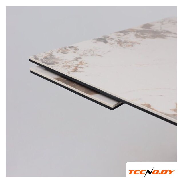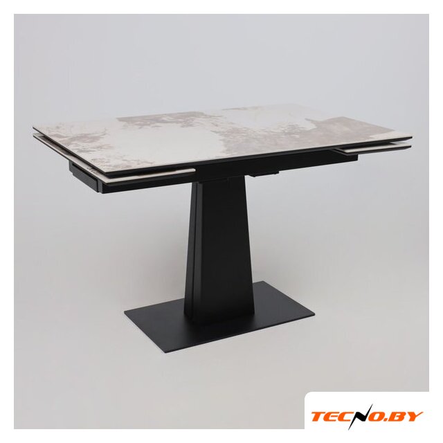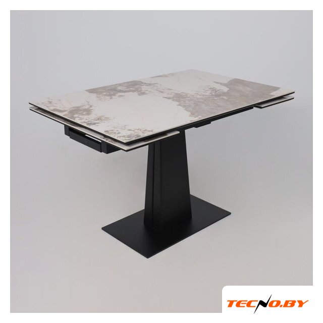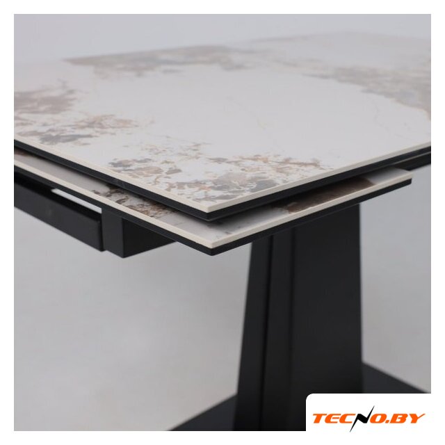 круглая, раздвижной, 1200x1200 мм, высота 750 мм, в разложенном виде 1600x1200x750 мм, материал: керамика/ЛДСП (столешница), металл (опоры), белый