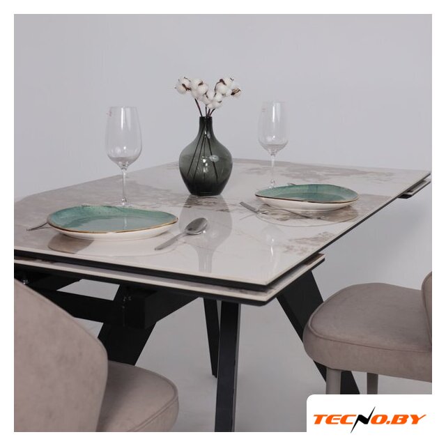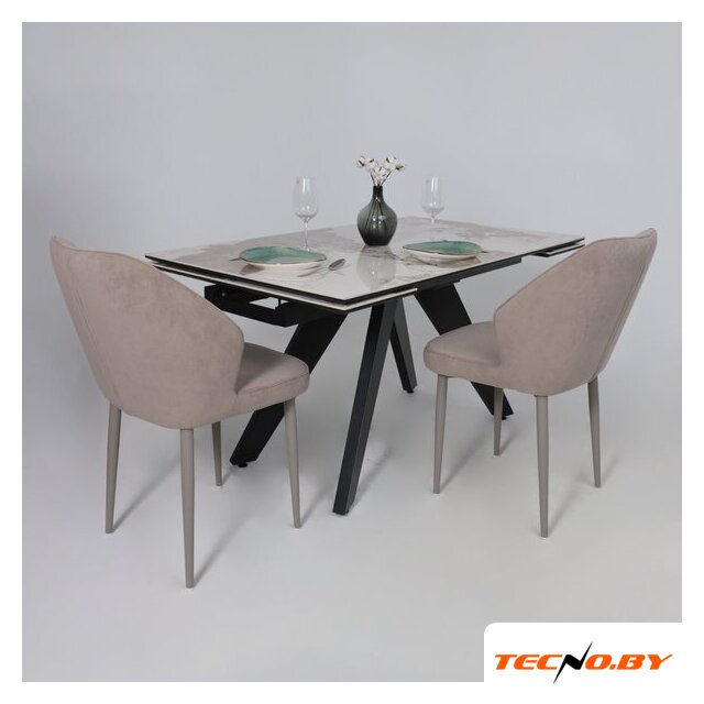 круглая, 1160x1160 мм, высота 750 мм, материал: МДФ/керамогранит (столешница), металл (опоры), серый