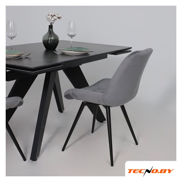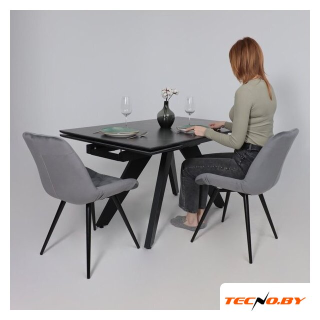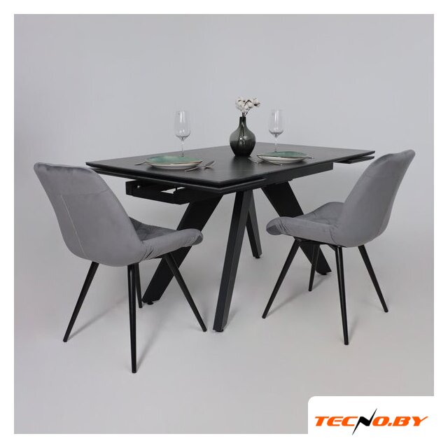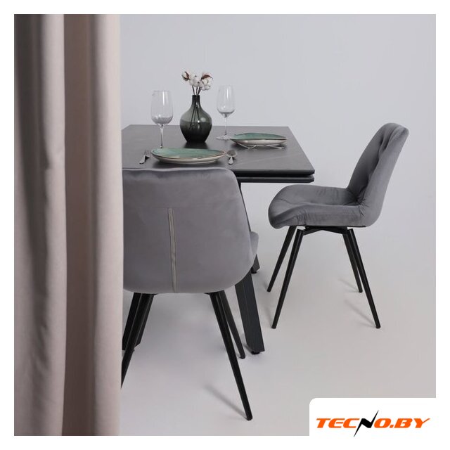 круглая, 1160x1160 мм, высота 750 мм, материал: МДФ/керамогранит (столешница), металл (опоры), серый
