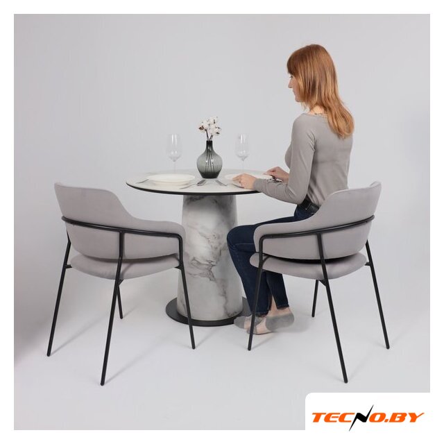 кухонный стол, круглая, 1200x1200 мм, высота 760 мм, материал: МДФ (столешница), сталь (опоры), серый