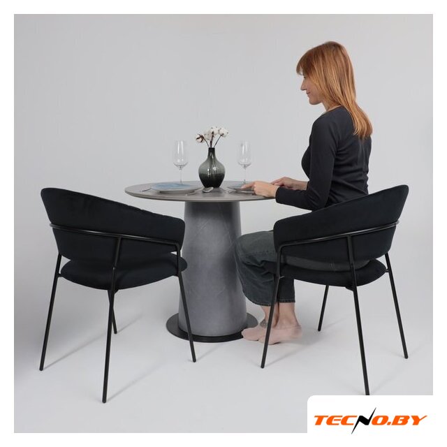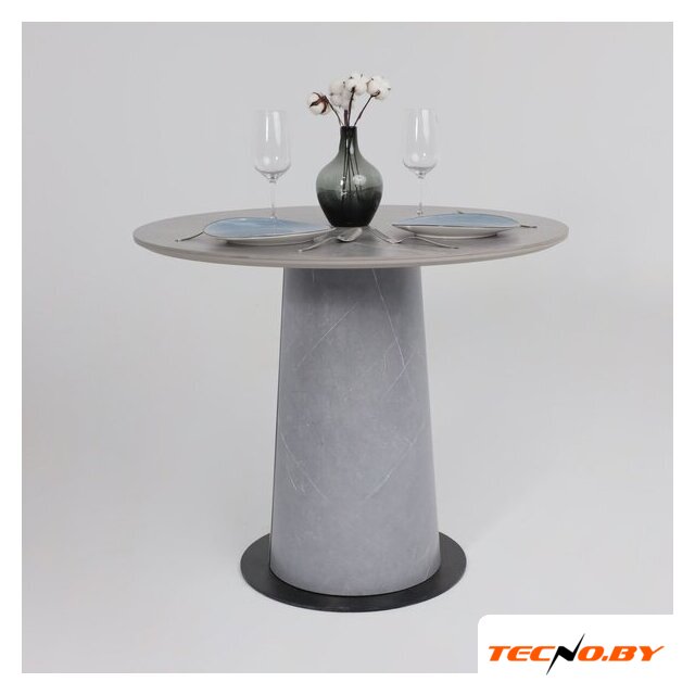 кухонный стол, круглая, 1200x1200 мм, высота 760 мм, материал: МДФ (столешница), сталь (опоры), серый