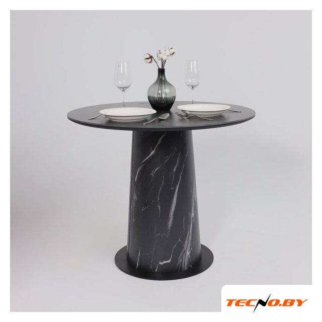 круглая, 1200x1200 мм, высота 750 мм, материал: МДФ (столешница), пластик (опоры), черный/рисунок