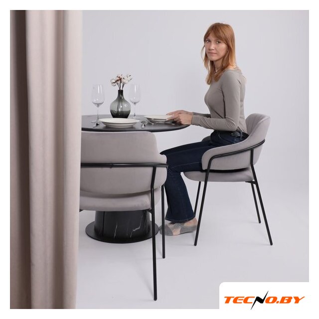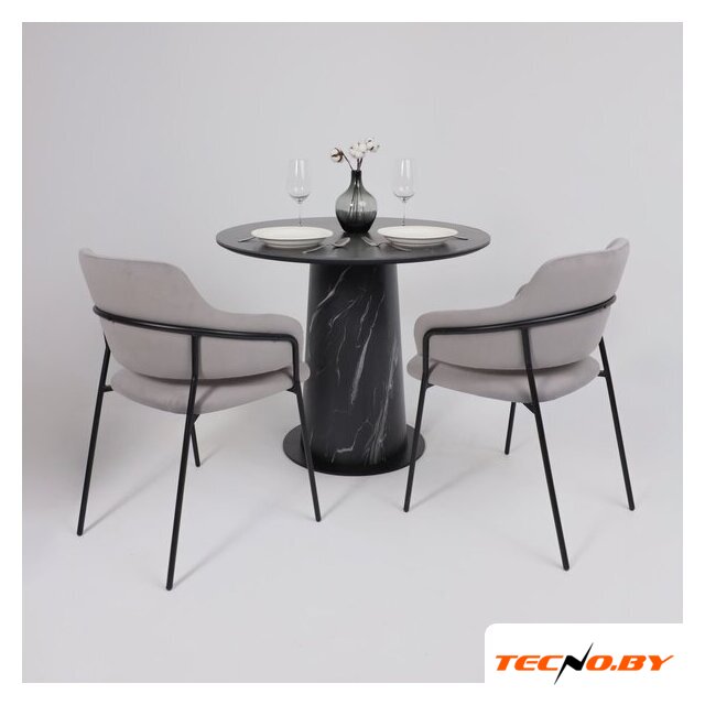 кухонный стол, круглая, 1200x1200 мм, высота 760 мм, материал: МДФ (столешница), сталь (опоры), серый