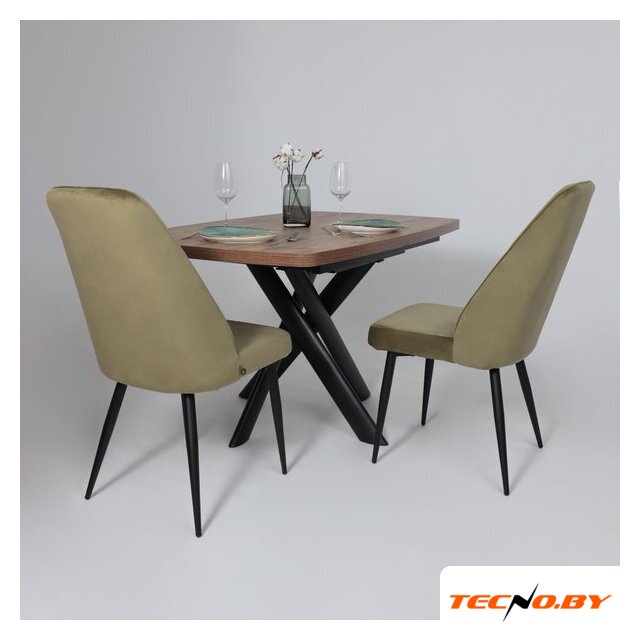 кухонный стол, прямоугольная, раздвижной, 1200x800 мм, высота 760 мм, материал: МДФ (столешница), сталь (опоры), коричневый