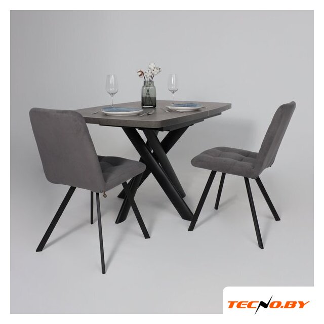 прямоугольная, раздвижной, 1300x850 мм, высота 750 мм, в разложенном виде 1650x850x750 мм, материал: ЛДСП (столешница), металл (опоры), серый