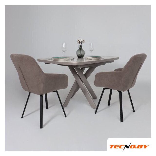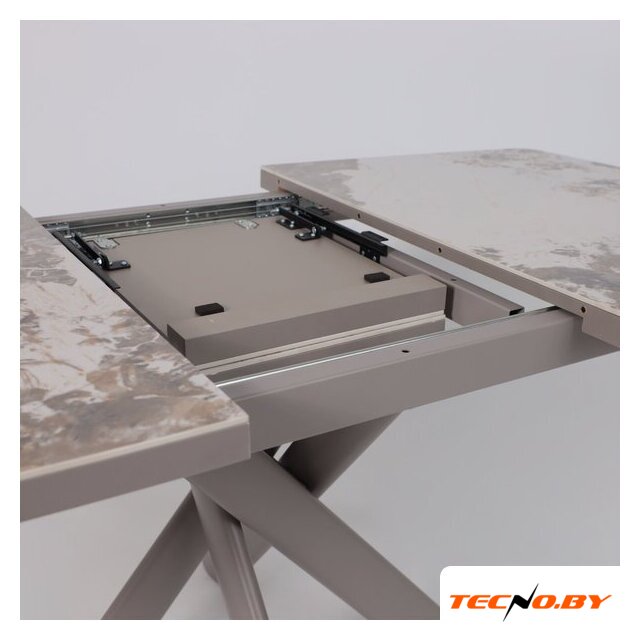 прямоугольная, раздвижной, 1300x850 мм, высота 750 мм, в разложенном виде 1650x850x750 мм, материал: керамика/ЛДСП (столешница), металл (опоры), серый