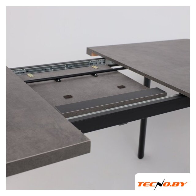 прямоугольная, раздвижной, 1600x900 мм, высота 750 мм, в разложенном виде 2050x900x750 мм, материал: ЛДСП/керамика (столешница), металл (опоры), темно-серый