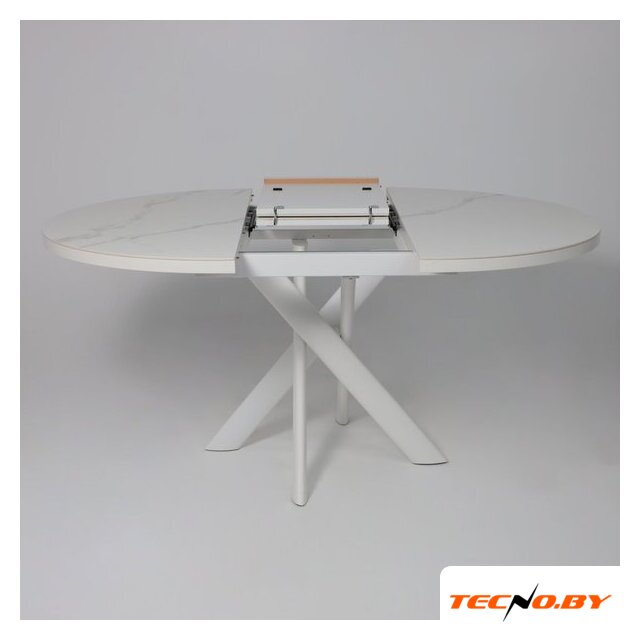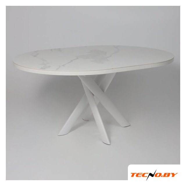 кухонный стол, овальная, 1500x900 мм, высота 770 мм, материал: МДФ (столешница), дерево (опоры), белый