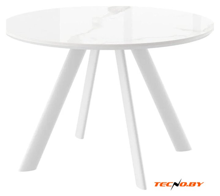 кухонный стол, круглая, 1000x1000 мм, высота 730 мм, материал: стекло (столешница), окрашенная сталь (опоры), белый
